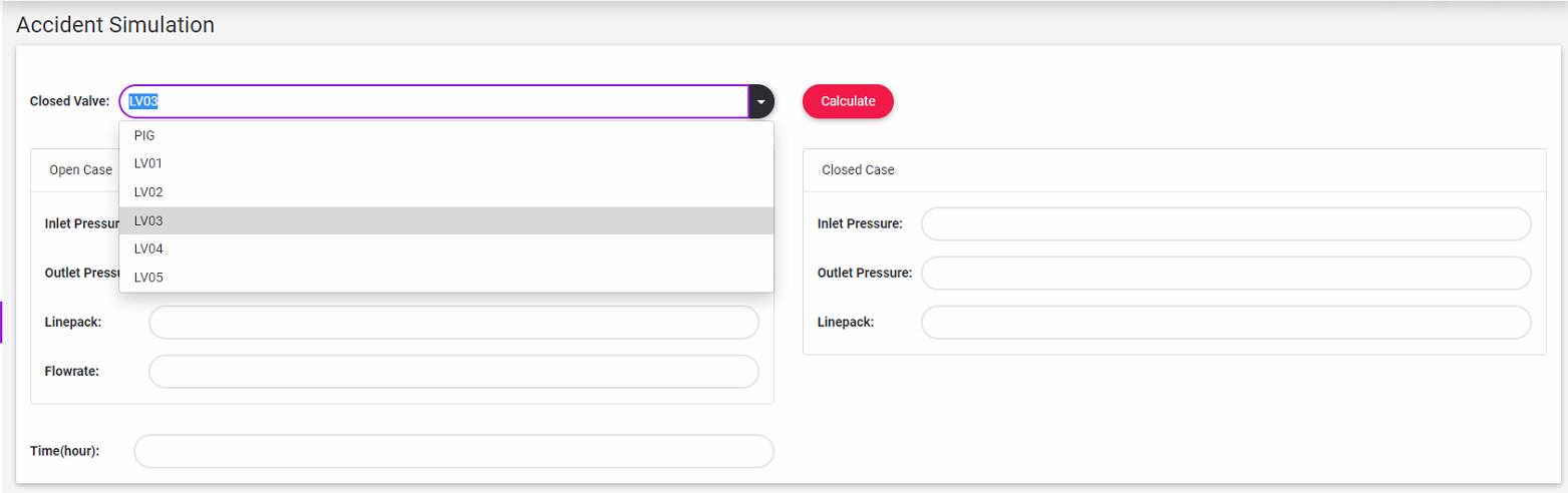 After Closed valve is selected, Time is calculated by pressing Calculate button.