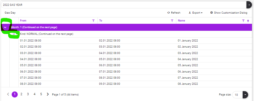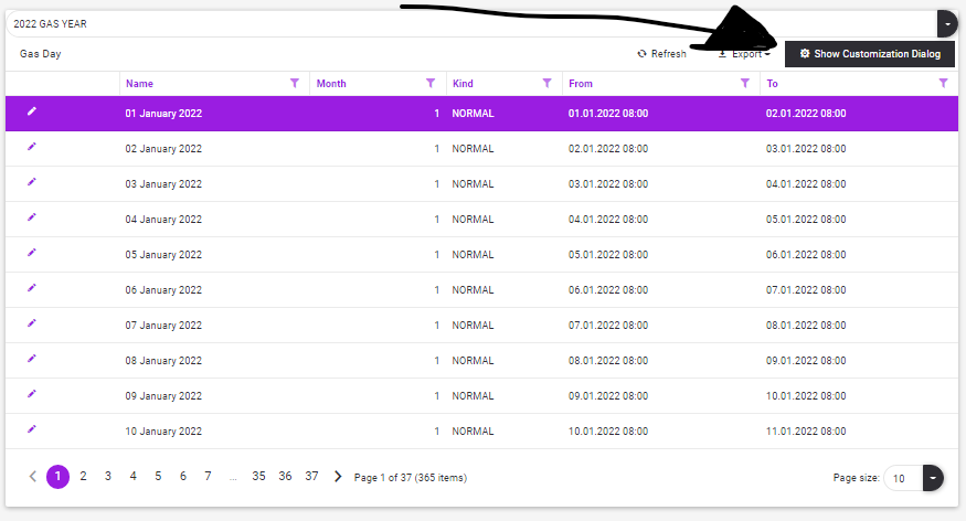 This table structure can be customized by clicking the "Show Customization Dialog" button in the upper right corner of "Grid components".