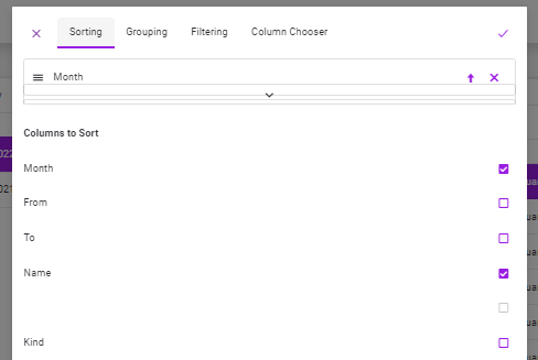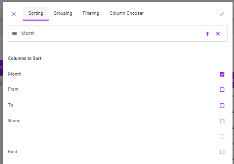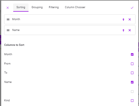 •If the user wants to sort on the 2nd or more columns at the same time (if he selects more than one column), the view in the sorting tab will be as follows.