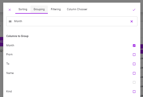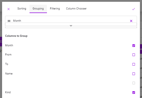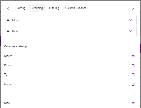 •If the user wants to group on the 2nd or more columns at the same time (if he selects more than one column), the view in the grouping tab will be as follows.
