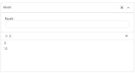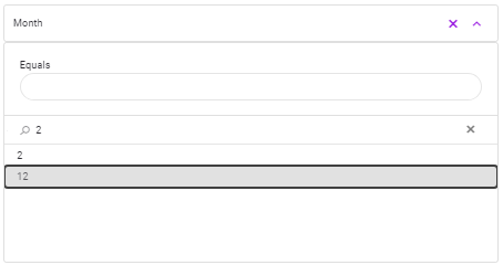 oProperties in the field opened for filters are variable according to this data type.