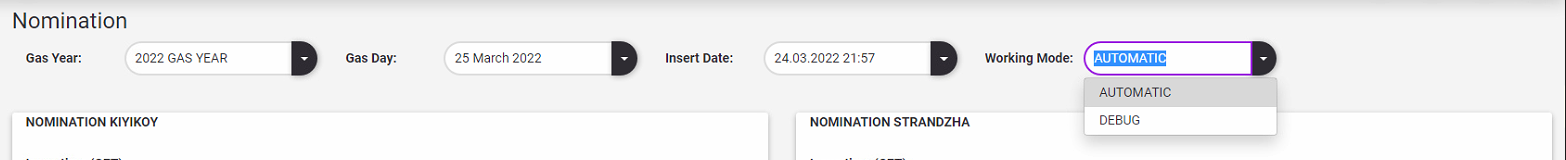 In Nomination Submodule system working mode can be changed as Automatic or Debug.