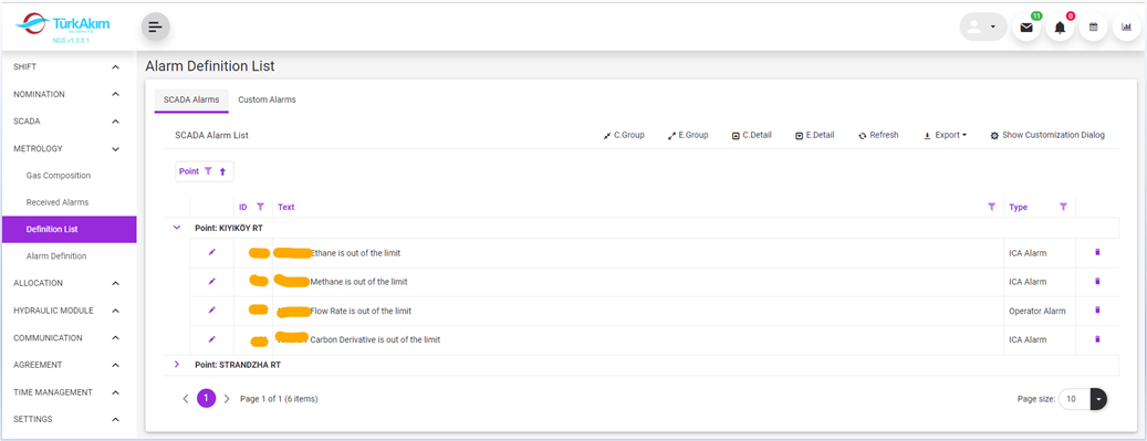 This section is used by Dispatcher Director, Dispatcher, SCADA Automation, and Metrologist.
