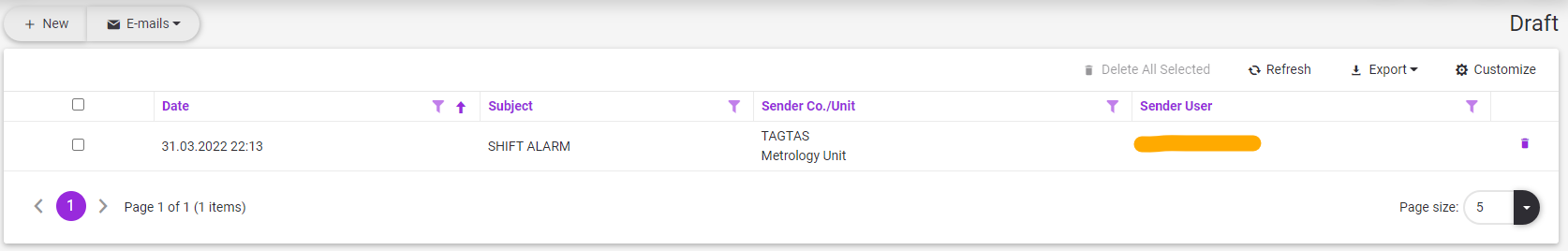 button depending on the e-mails selection on the list. All selected e-mails are deleted.