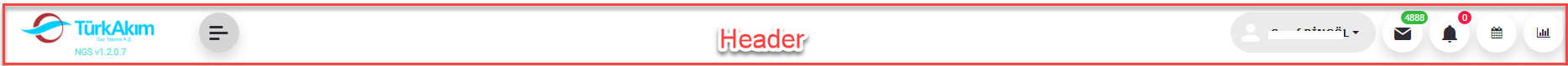 The "Header Bar" is the section that is displayed on Master Page hence all the pages. The elements in it contain the functions that the user will constantly need during the operation of the system. We will examine these elements in turn below.