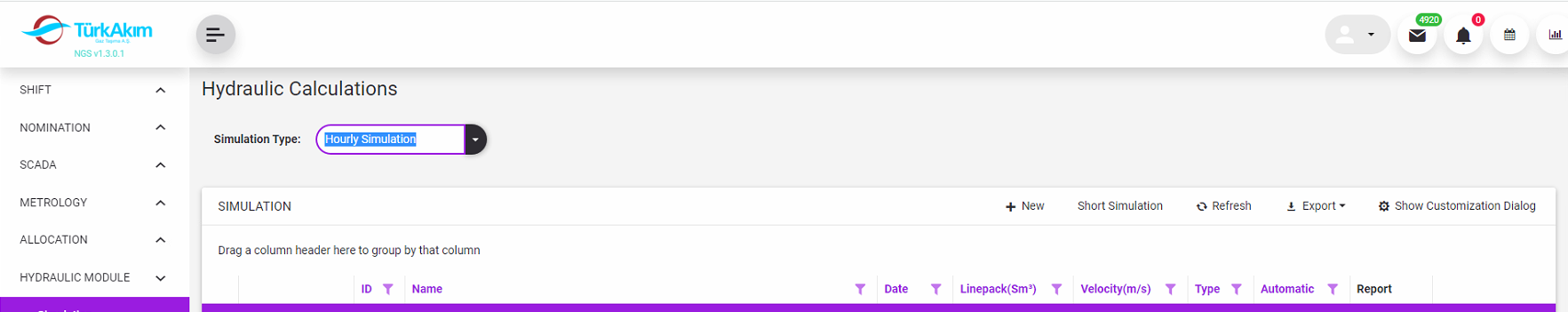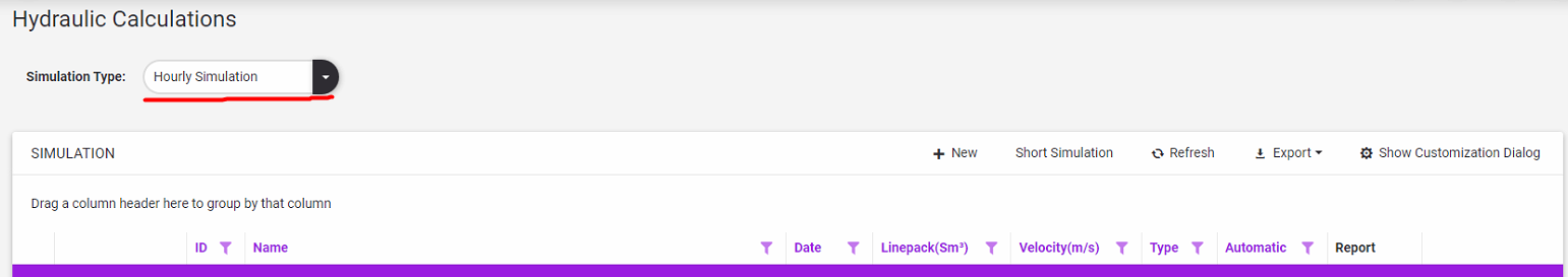 This Submodule lists all hydraulic simulations. Also, Hydraulic calculation are made in this submodule.