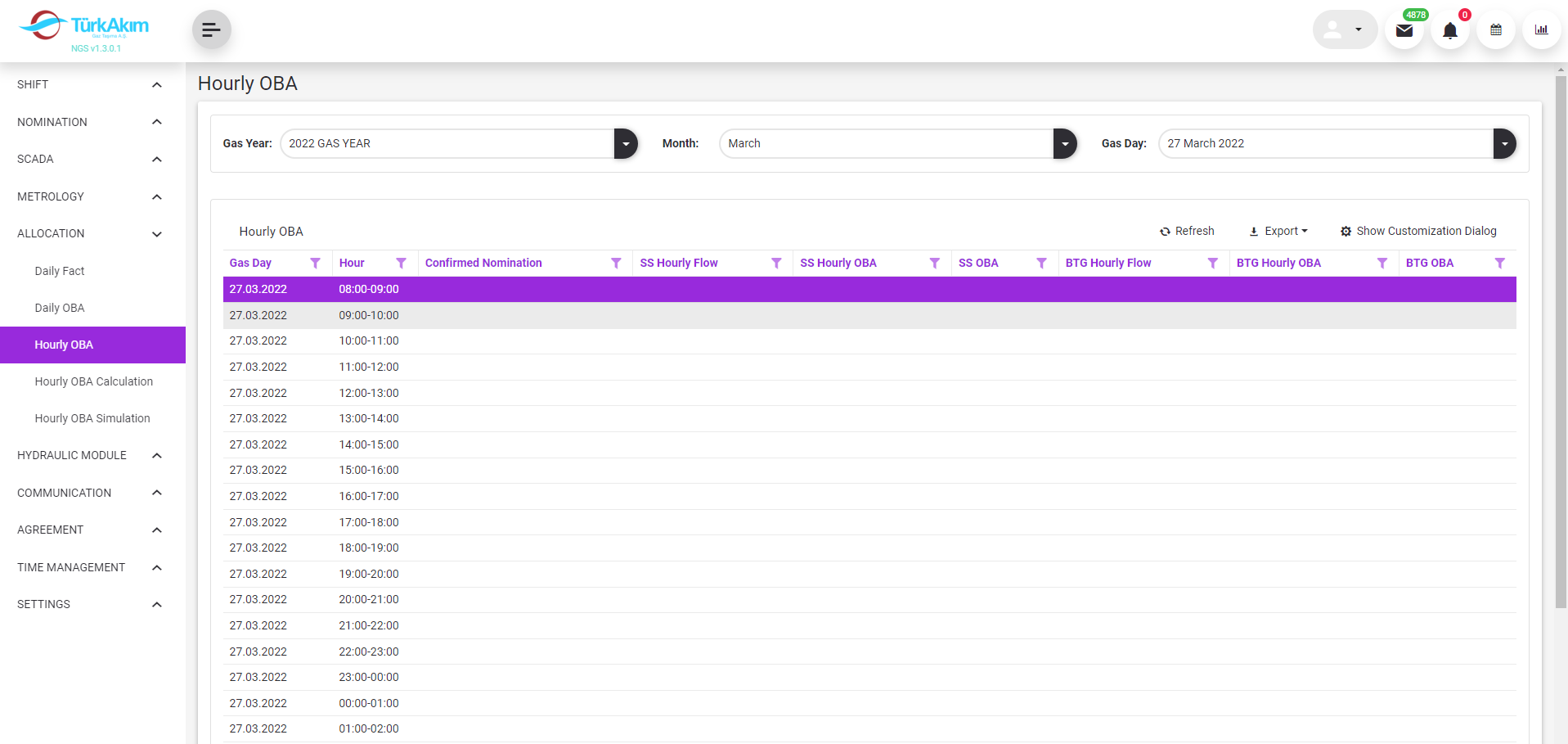 Hourly OBA calculations are automatically calculated by the system after receiving hourly flow values provided by the SCADA data system according to formula as follow.