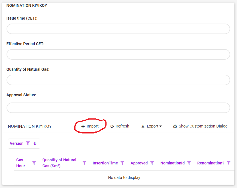 •There is the relevant grid with the Import option.