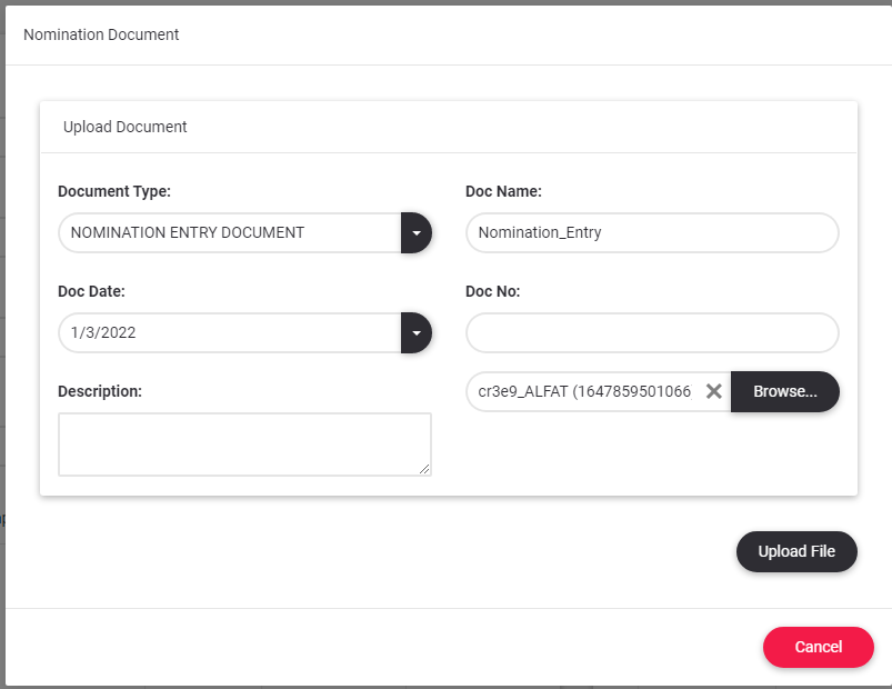 •The file is loaded by making the appropriate selection in the fields in the window that opens. (Browse and Upload)