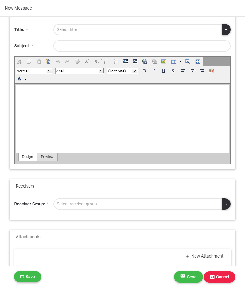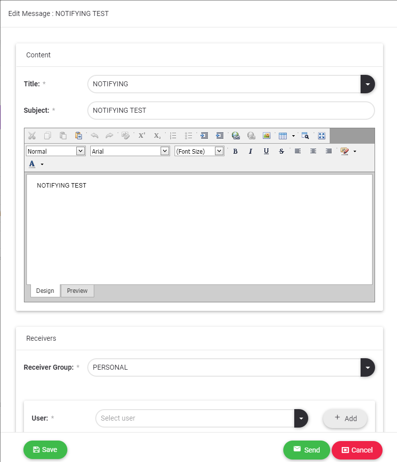 2.Role Based: More than one selection can be made from the defined roles. The created message is sent to all active users with the selected roles.