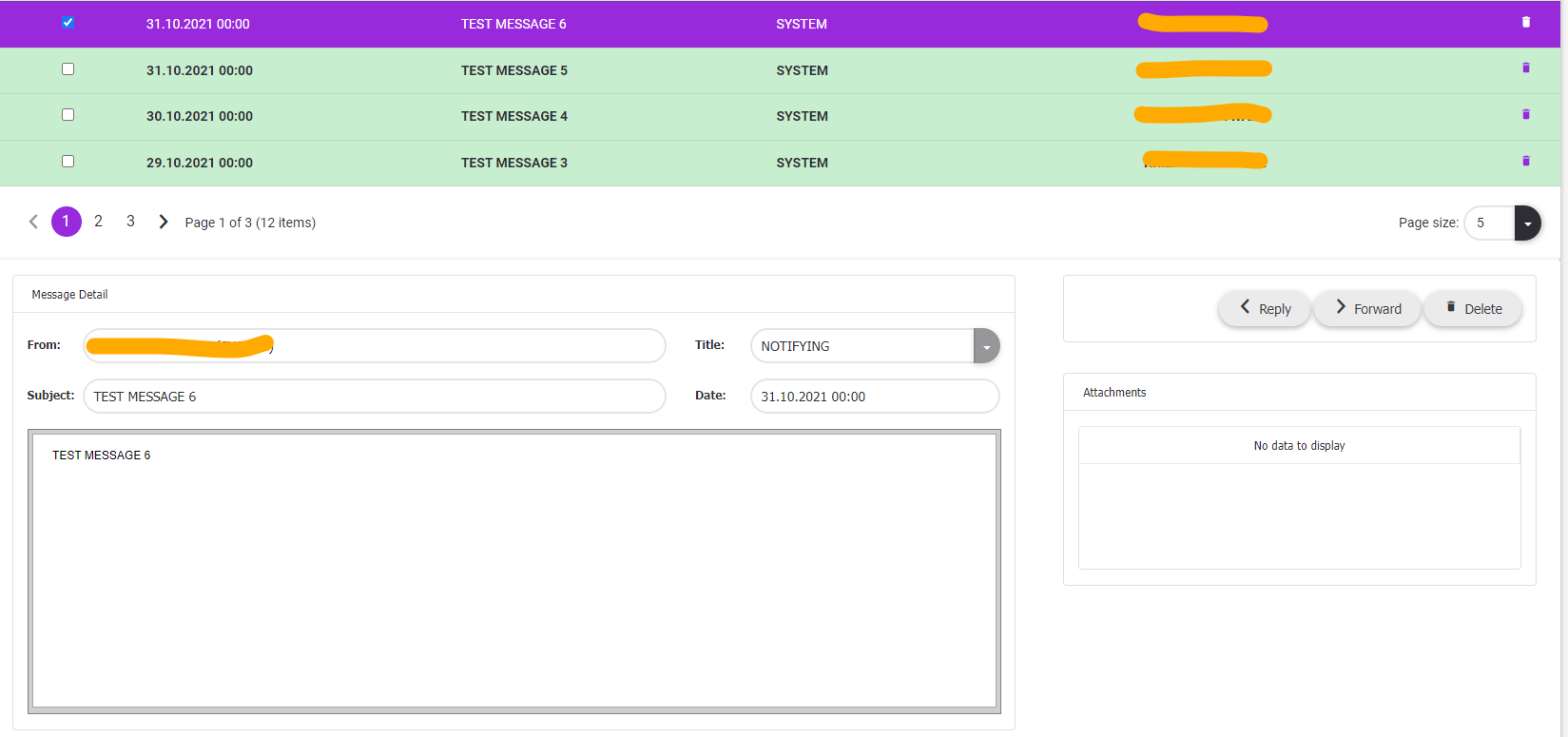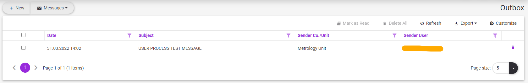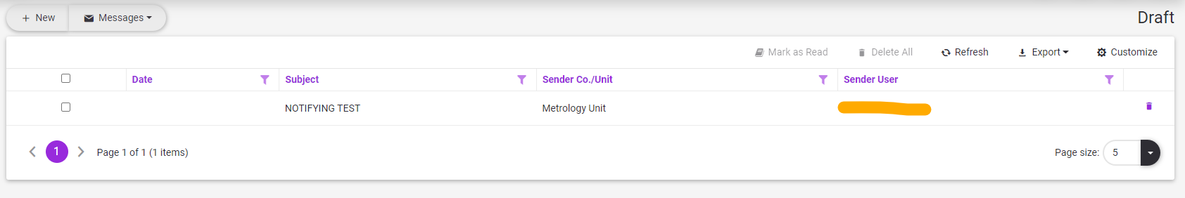 2.Click the delete button at the end of the message row. ![]()