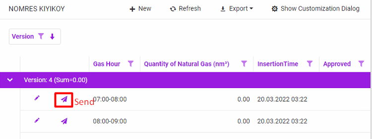 By selecting the gas year and gas day, the Nomination Responses for the relevant gas day are listed.