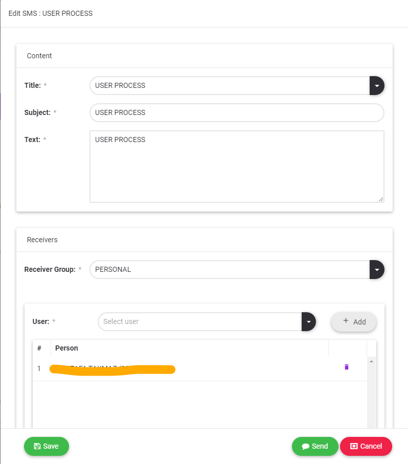 3.Personal: More than one selection can be made from the people who have a user account defined in the system. SMS messages are sent to selected users. There are two cycles that can be selected.