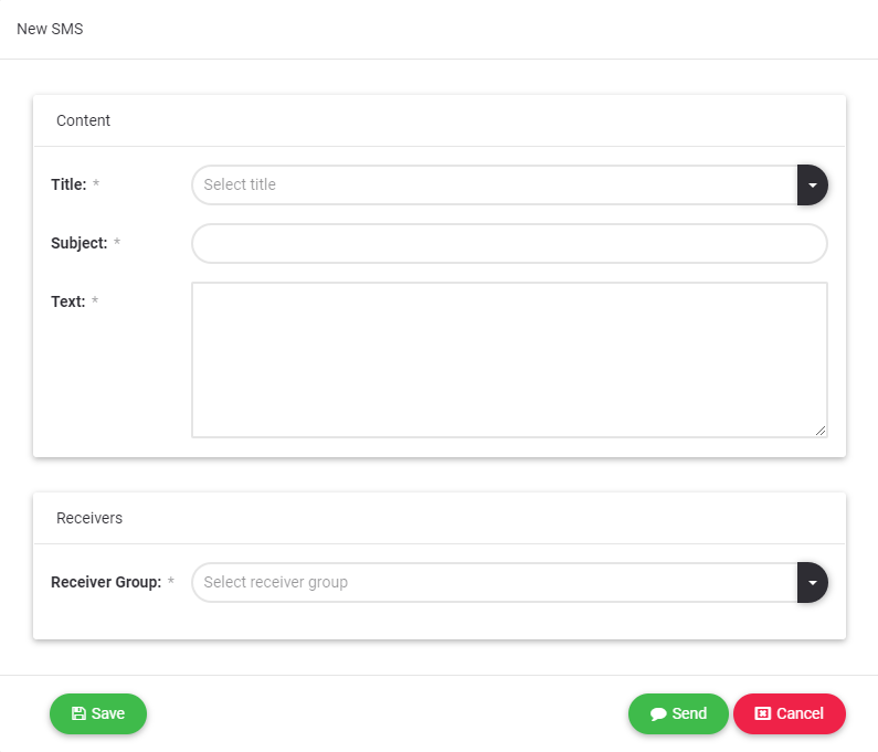 1.Role Based: More than one selection can be made from the defined roles. The created SMS is sent to all active users with the selected roles.