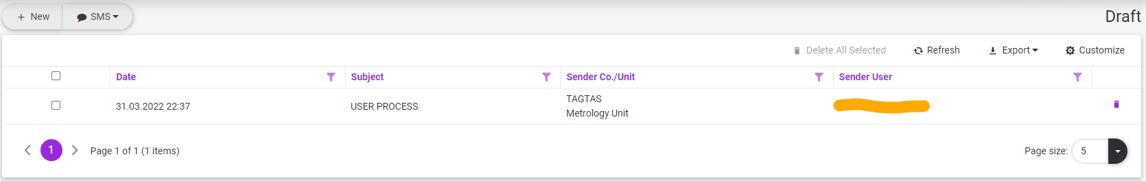 Deletes all selected SMS messages which are sent or saved as draft. ![]()