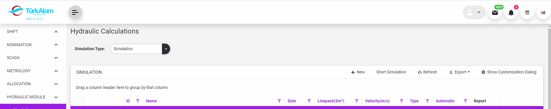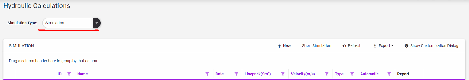 This Submodule lists all hydraulic simulations. Also, Hydraulic calculation are made in this submodule.