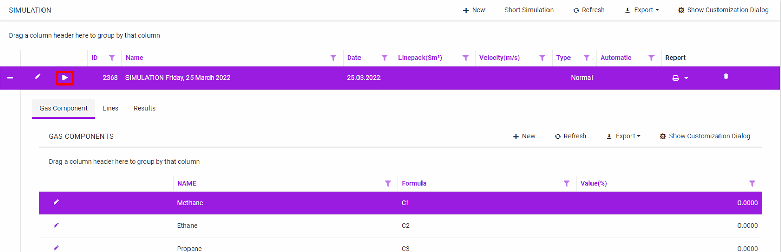 After Gas Component Values and Line properties are set, Calculation can be made.