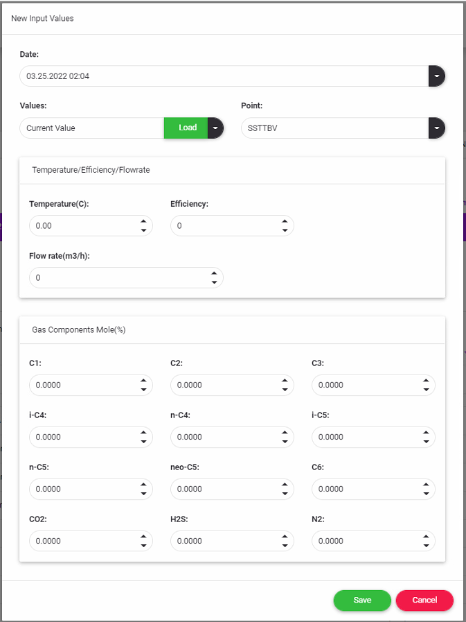 By clicking "New" button in Gas Component part, input values popup window is opened.