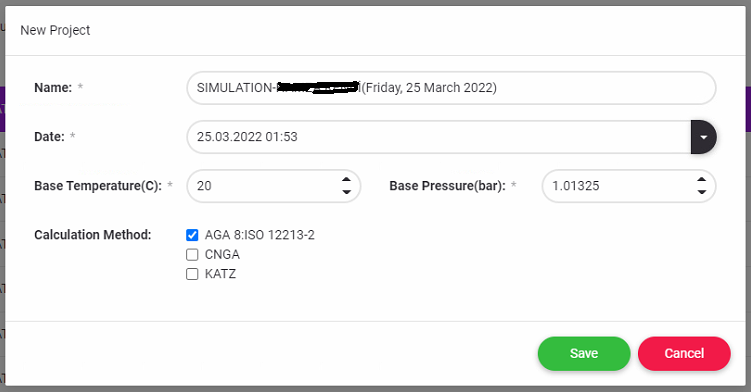 By pressing "Save" button Gas Components values are saved for the project and listed.